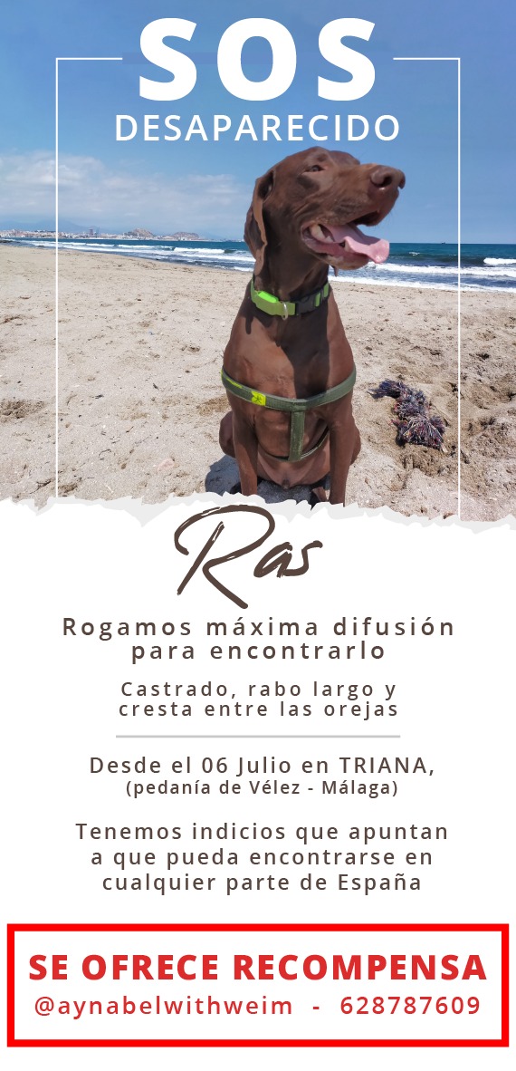 SE BUSCA a Ras, perro PERDIDO BRACO ALEMÁN DE PELO CORTO
