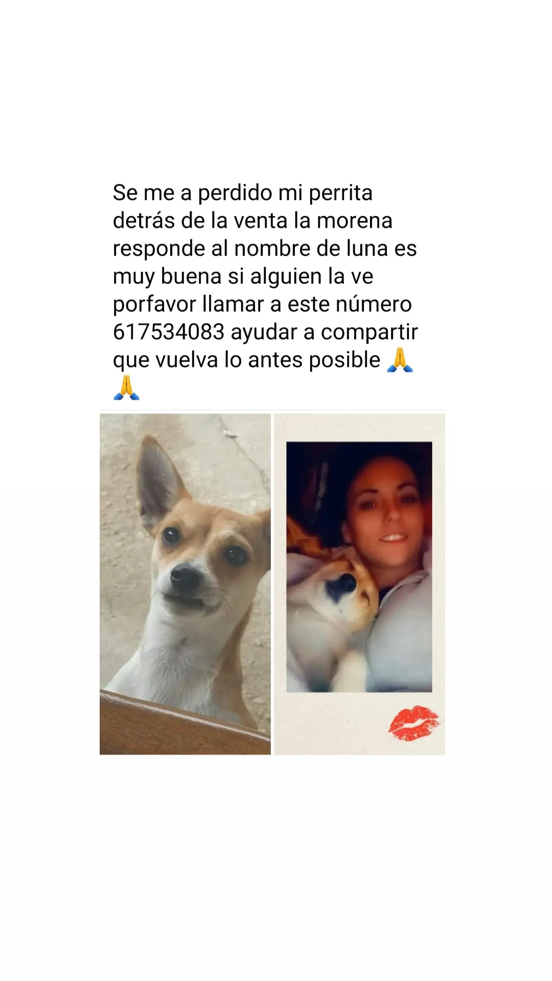 Si tienes alguna pista o noticia que ayude a encontrar a este, puedes enviar un mensaje a su anunciante. Este mensaje llegará directamente al anunciante, que normalmente será la familia del perr@ perdido@. Por favor, sé responsable con tus mensajes.